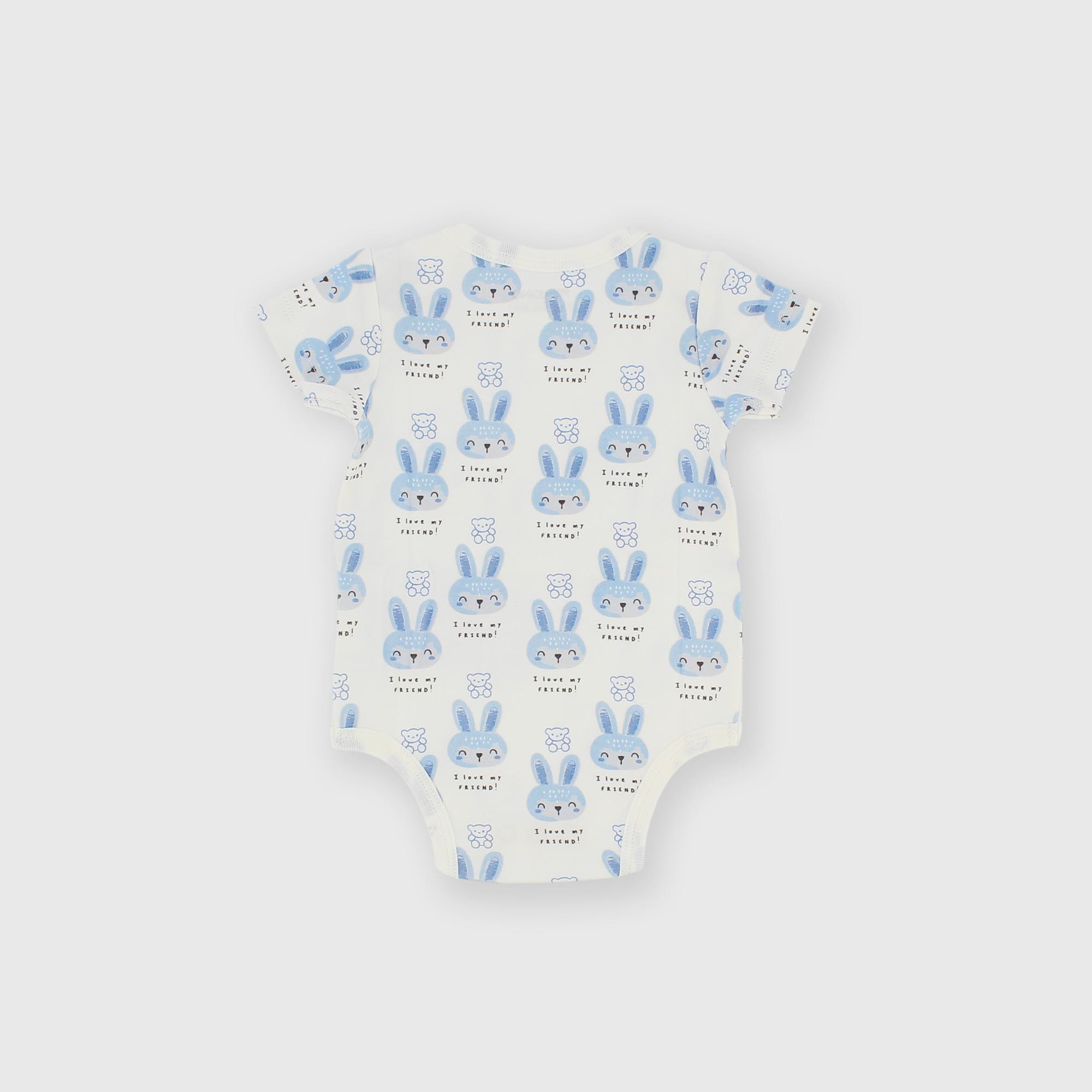 Боди интерлок с круглым вырезом и короткими рукавами. Застежка на кнопки внизу. Сплошной принт.