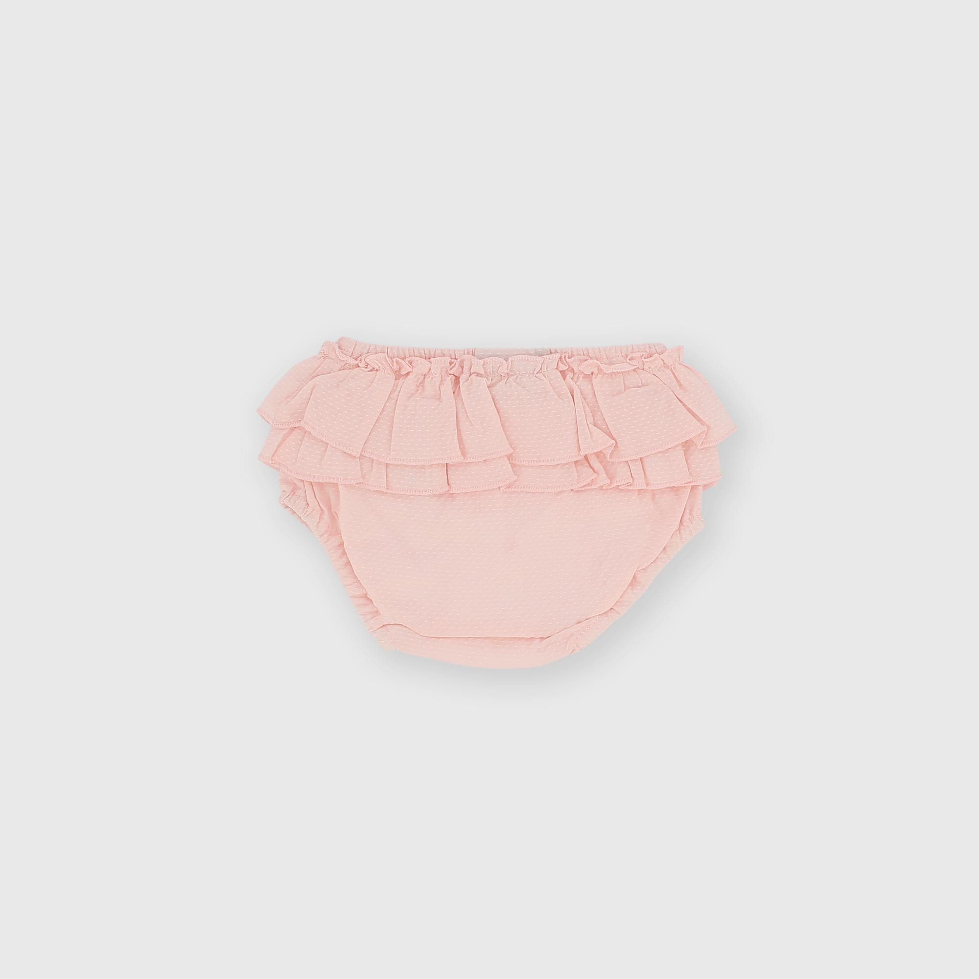 Трусики из хлопка и вискозы с резинкой на талии. На поясе нанесены оборки. Сплошной цвет.