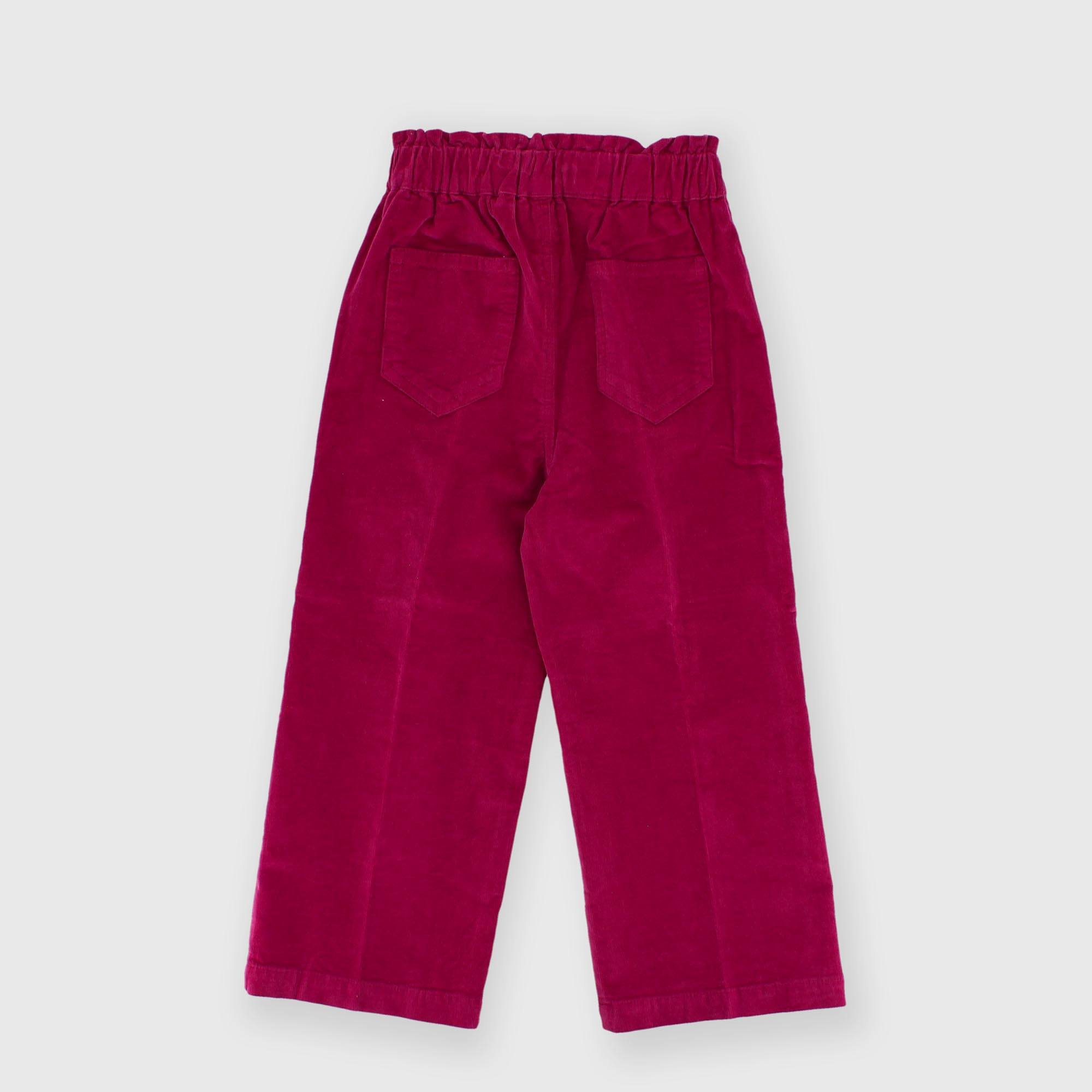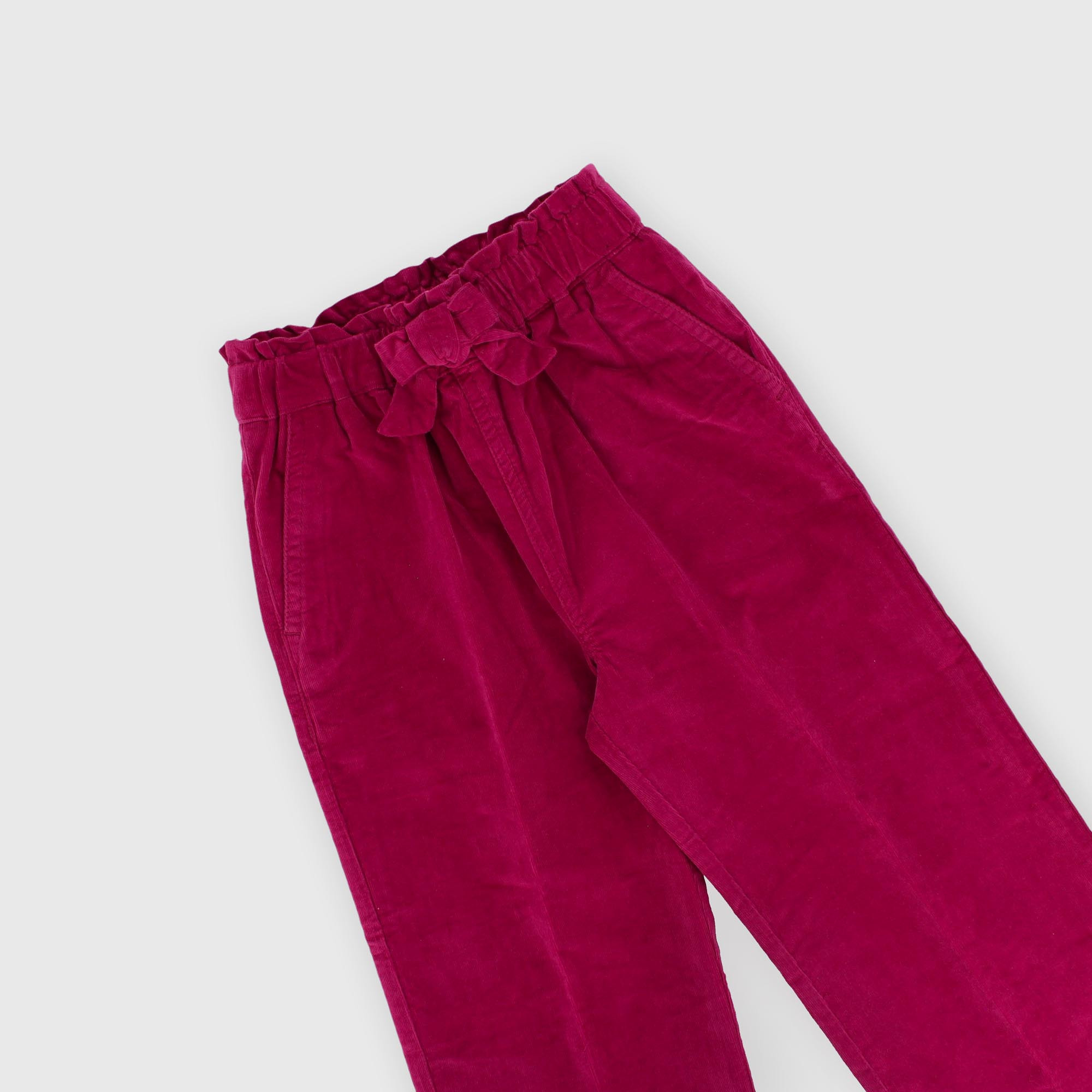 Широкие брюки из бархата с эластичной талией и бантом. Французские карманы спереди и накладные карманы сзади.