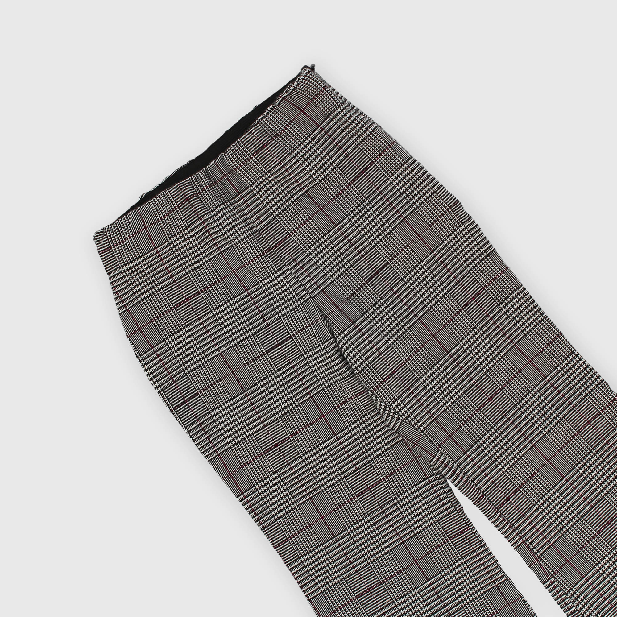 Расклешенные брюки из ткани «Принц Уэльский». Потайная застежка-молния сбоку.