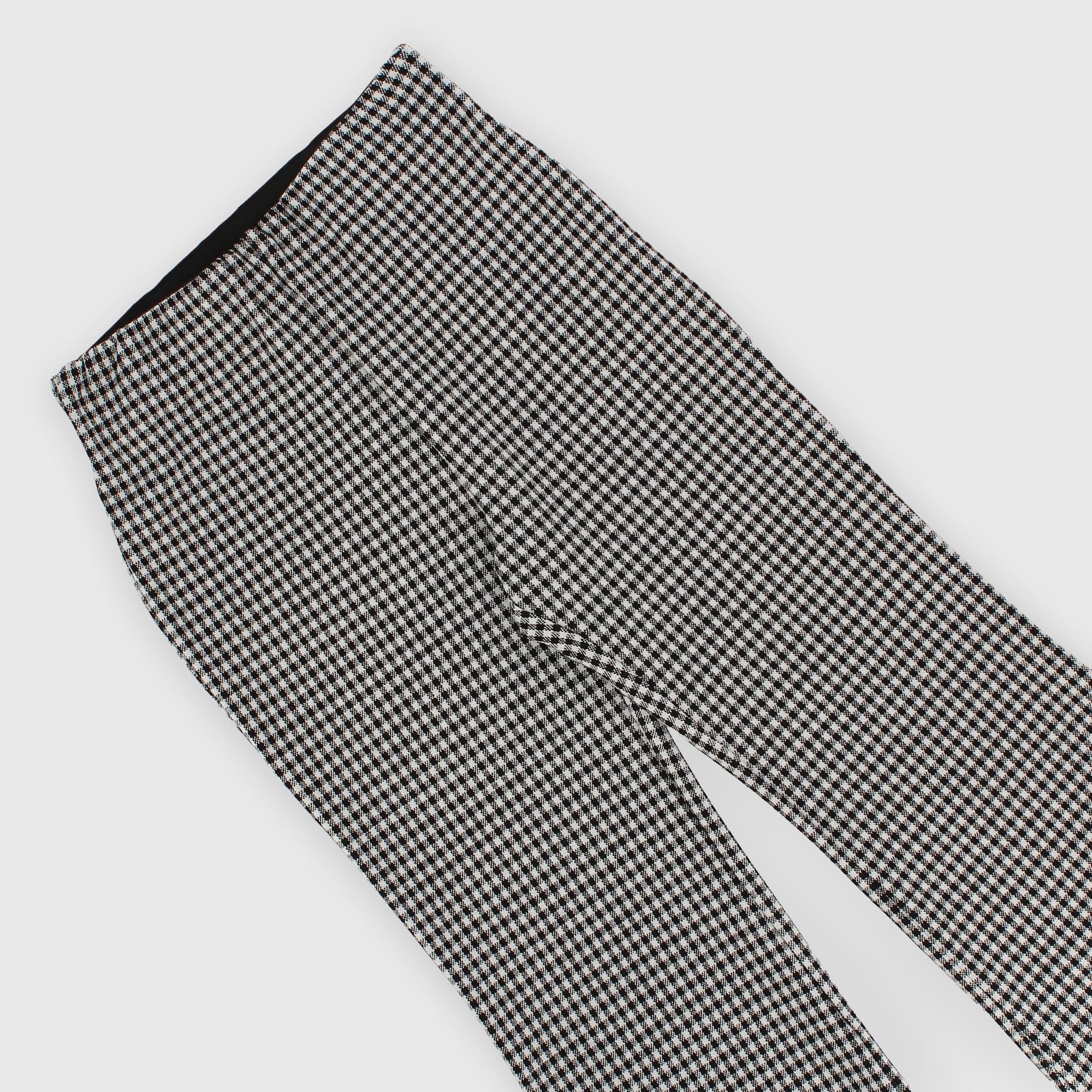 Расклешенные брюки из ткани с узором «гусиная лапка». Потайная застежка-молния сбоку.