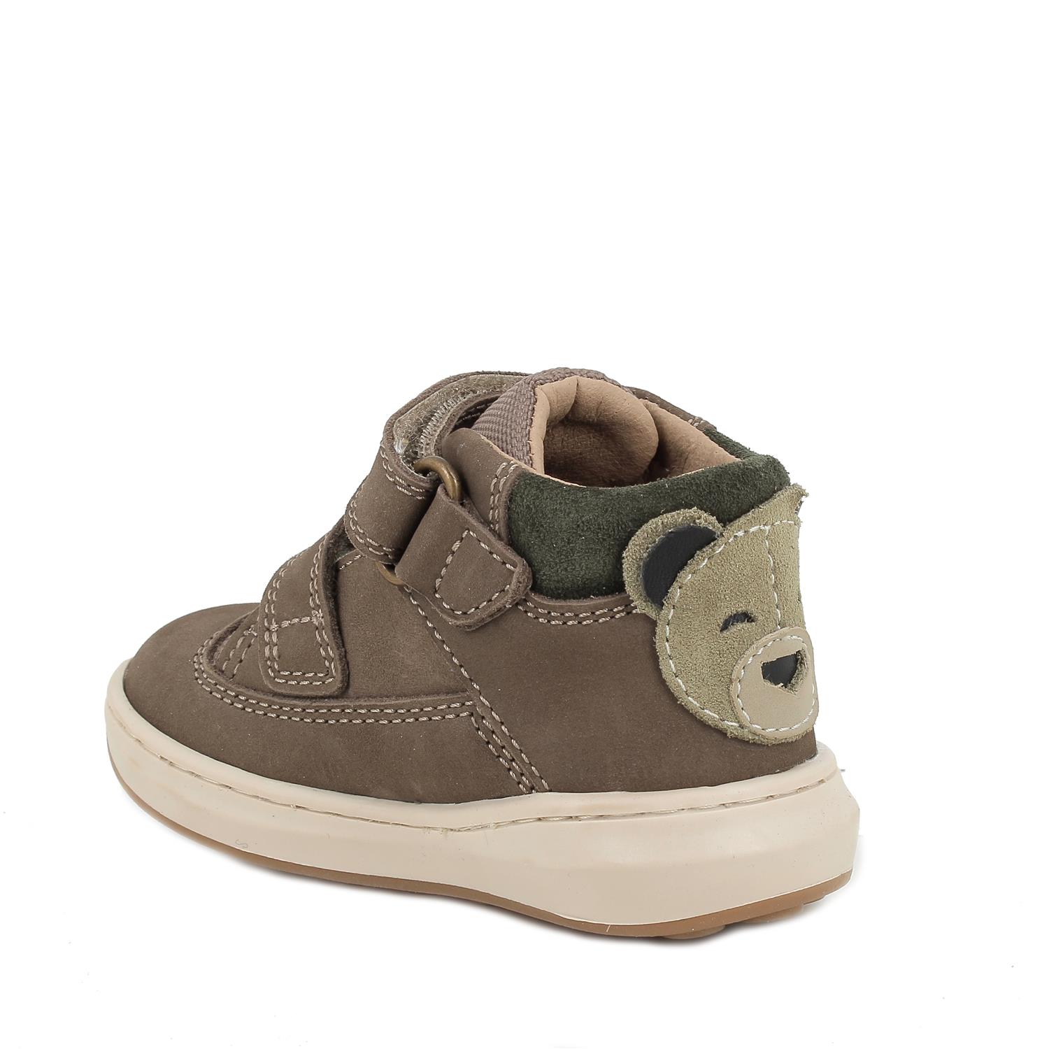 Приветствуя и защищая, эта обувь для первых шагов имеет качество и долговечность кожи. Это ботиночки с двумя застёжками на липучках, которые легко надевать даже самым маленьким. Их покорит забавный мишка на пятке.